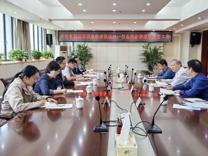 省委办公厅档案管理二处副处长胡敏、省档案馆整理编目处四级调研员陈姗姗、省委办公厅档案管理二处一级主任科员吴勇、省档案馆整理编目处四级主任科员易文文全程参加检查指导。学校党委办公室(校长办公室)、档案馆相关同志陪同检查。