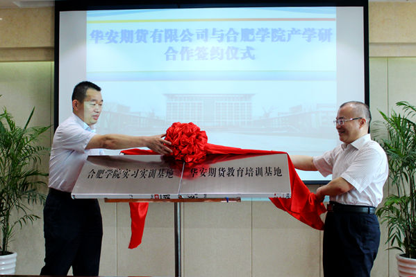 9月9日,华安期货有限公司总经理汤益民带领相关负责人来校参加产学研合作签约仪式。党委副书记、校长张文兵,党委副书记丁明等在行政楼九楼西会议室接待来宾并举行了签约仪式,为产学研合作基地揭牌。仪式由丁明主持。