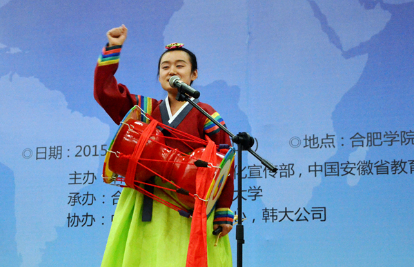 比赛期间,来自合肥学院的刘小雪用清淡舒缓的声音向观众娓娓道来《我的韩国生活》,姿态自然得体,内容精彩丰富。安徽外国语学院的夏思涵还原经典韩剧片段,生动形象地说明了韩剧的发展,幽默的剧情表演将现场气氛推向高潮。安徽外国语学院曾雯莹同学深情演讲《潮流的过去与现在》,场下亲友团激动的喊着口号为她呐喊助威,精彩的表现为比赛再度添彩。选手们标准的发音和良好的口语表达能力获得评委们的一致好评。