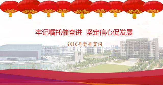 年华似水,岁月流金。在即将告别硕果累累的2015年,跨入充满希望的2016年之际,我们谨代表学校向全体师生员工、离退休老同志和海内外校友,致以节日的问候和新年的祝福,向所有关心、支持学校建设与发展的各级领导和社会各界朋友表示由衷的感谢!