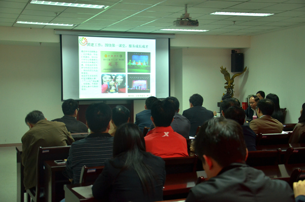 会上,各教学单位党政主要责任人PPT汇报的形式,从教学、科研、党建、学生及团建工作五个方面对照本年度目标任务完成情况、年度工作重要举措和创新性成果进行了汇报交流。