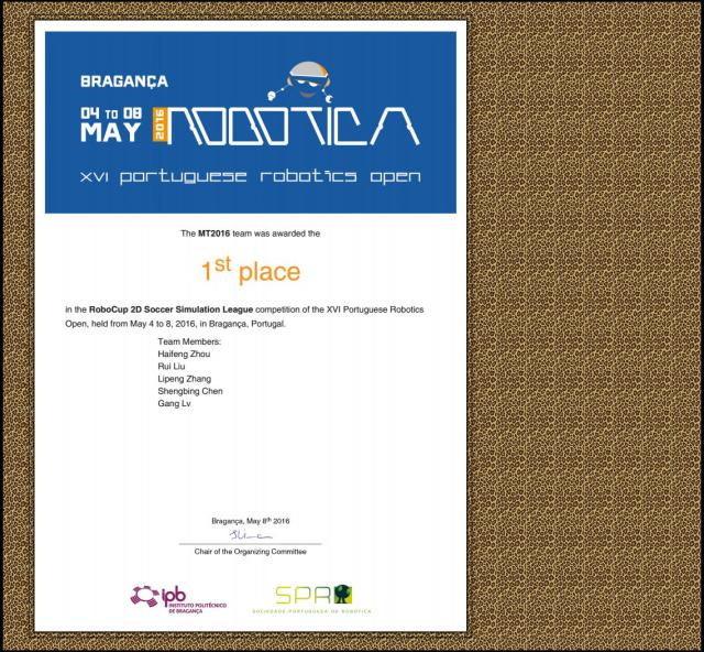——我校MT2016仿真2D机器人足球队获葡萄牙公开赛仿真2D足球组冠军