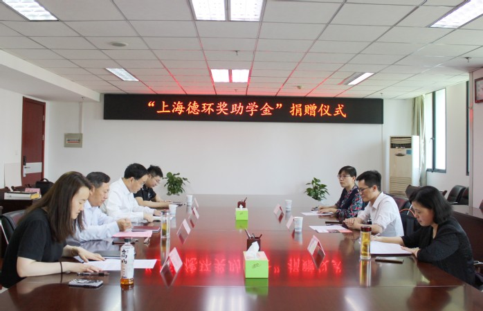 4月20日,“上海德环奖助学金”捐赠仪式在我校行政楼会议室举行。上海德环实业有限公司总经理陈俊,安徽中德教育合作基金会秘书长何世昆,经济与管理学院院长陈江华,经管学院党委副书记、纪委书记夏丹青等参加捐赠仪式。