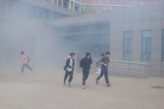 为保障演练效果,4月8日保卫处组织召开了火灾疏散逃生大演练协调会,公布演练方案、明确参演部门分工、强调安全注意事项。10日中午13点半,随着总指挥下达命令,演练正式开始。楼宇管理员发现突发火情并伴有浓烟,立即发出火灾信号,组织学生疏散。学生按引导员的指示,以最快的速度关闭宿舍内所有电源后,沿就近的消防疏散楼梯向楼外安全地带疏散,并及时呼叫室友一同撤离。由于通道内充斥演习组释放的浓烟,学生在浓烟状态下护住口鼻、低姿快速地通过浓烟区,全体人员均安全到达疏散地点,演练共用时6分钟。